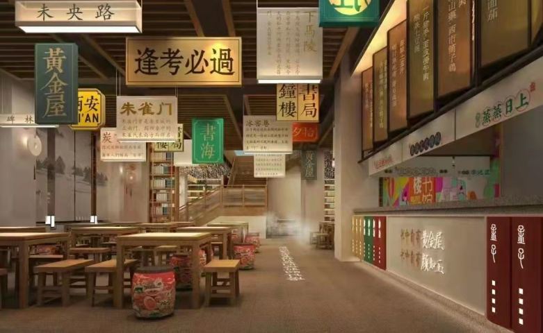 西安長安大排檔之鐘樓圖書館店餐飲桌椅定制案例