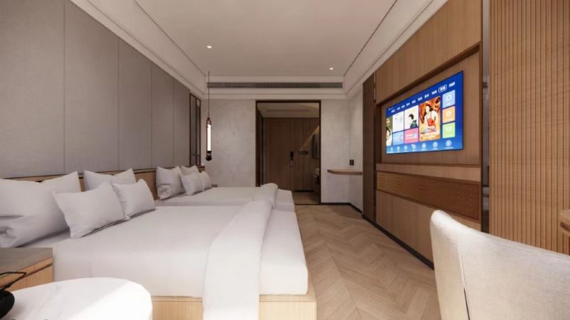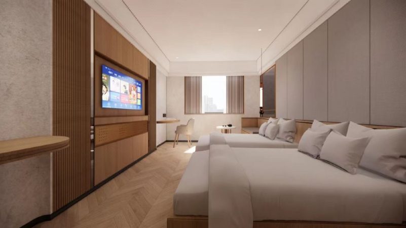 前面我們說過,客戶的酒店位置絕佳,處于城中心的廣場旁。因此,即使是二次翻新改造,客戶依然沒有采用家具貼膜的方式去圖省錢,而是要重新設(shè)計酒店客房,再按照效果圖去定制家具。